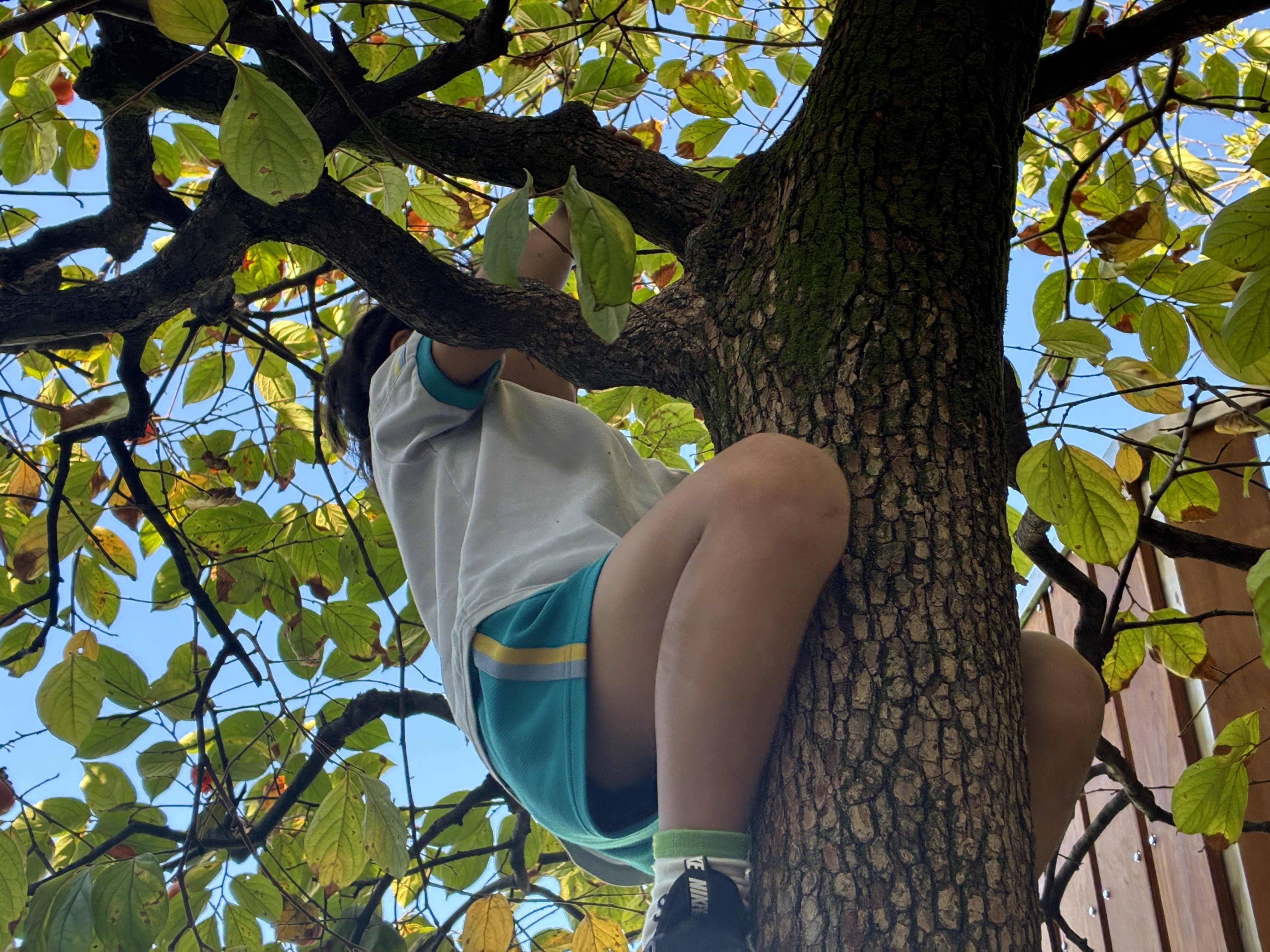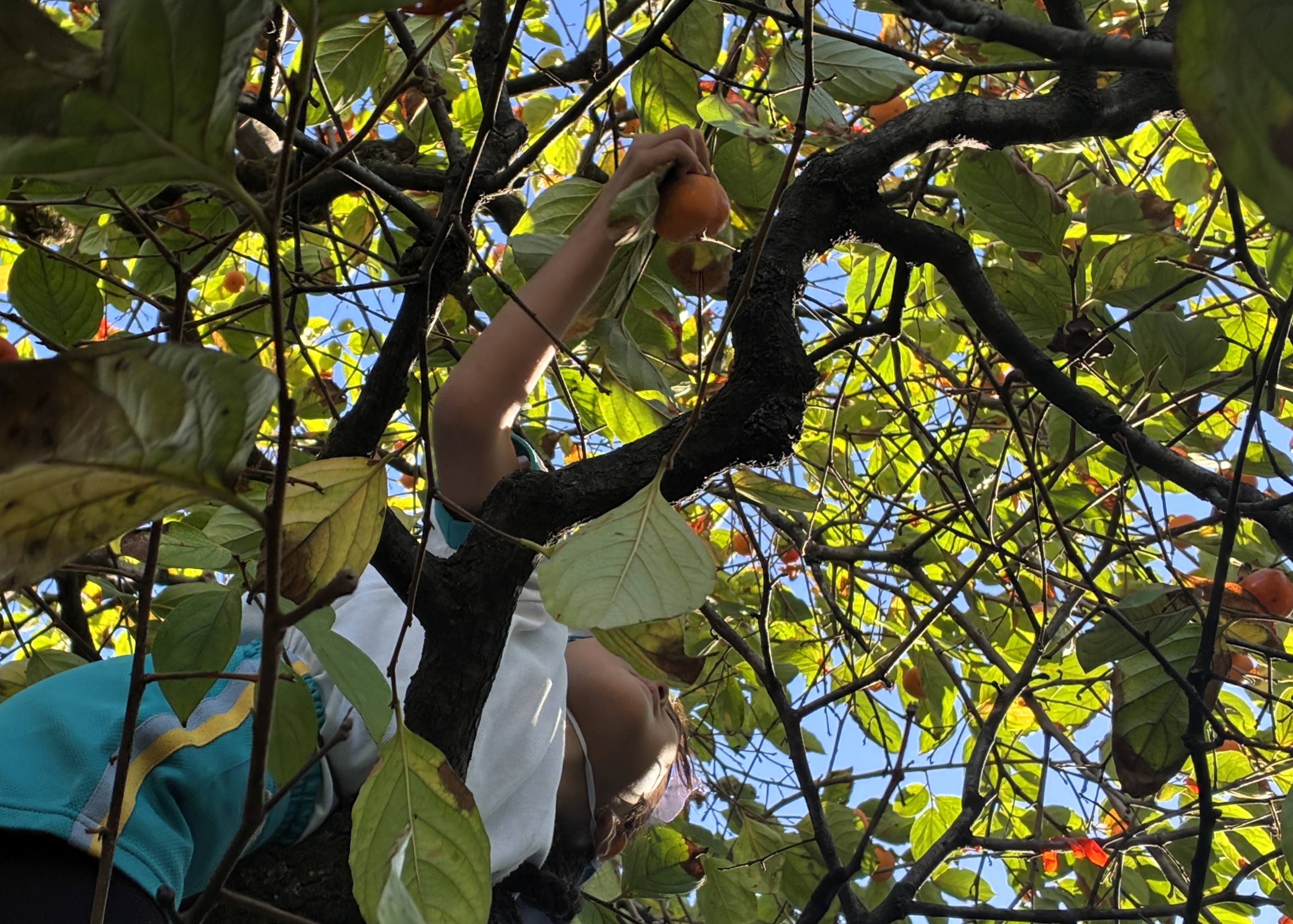 毎年子どもたちが木登りをして柿を取るのが恒例となっており