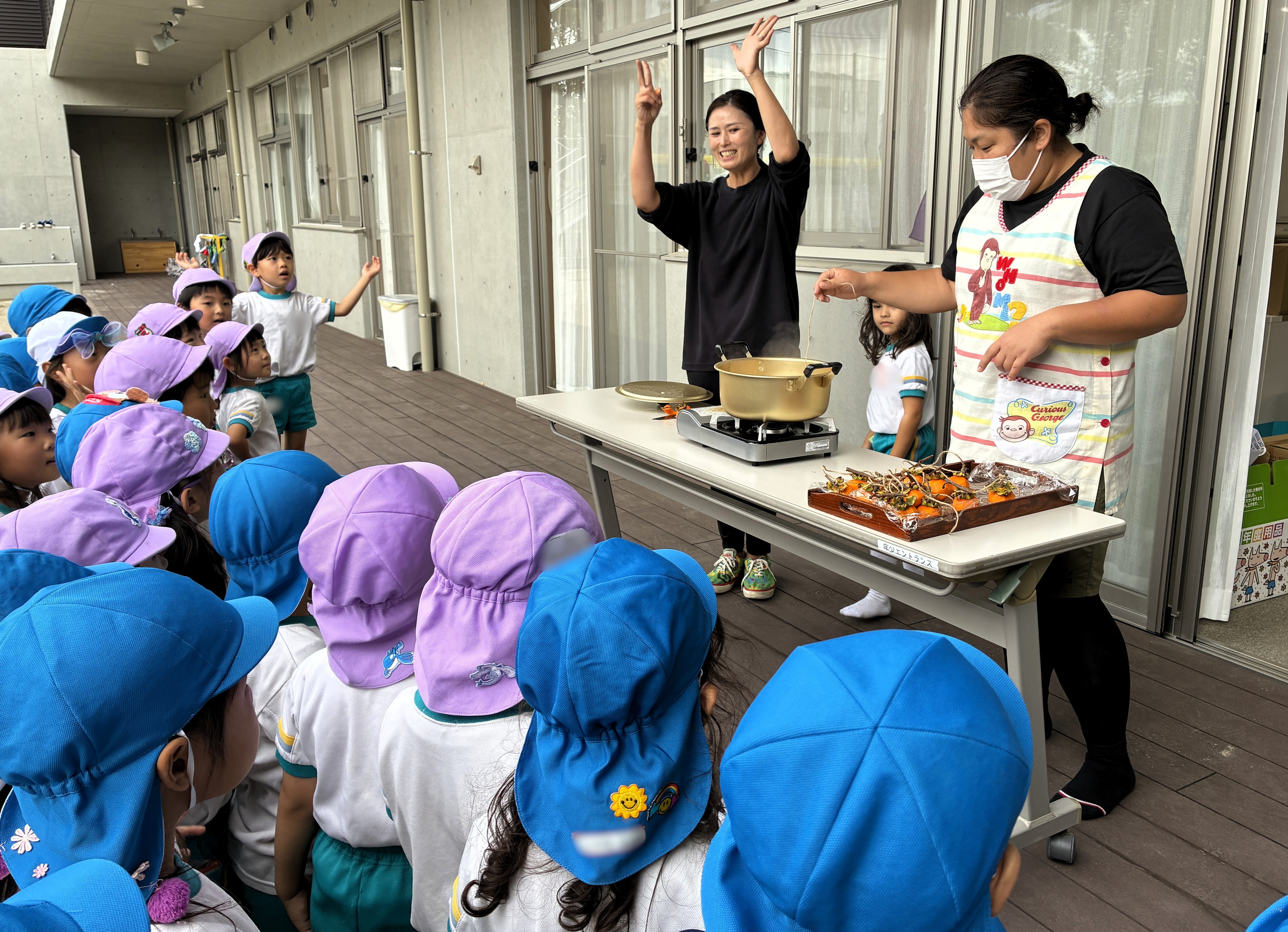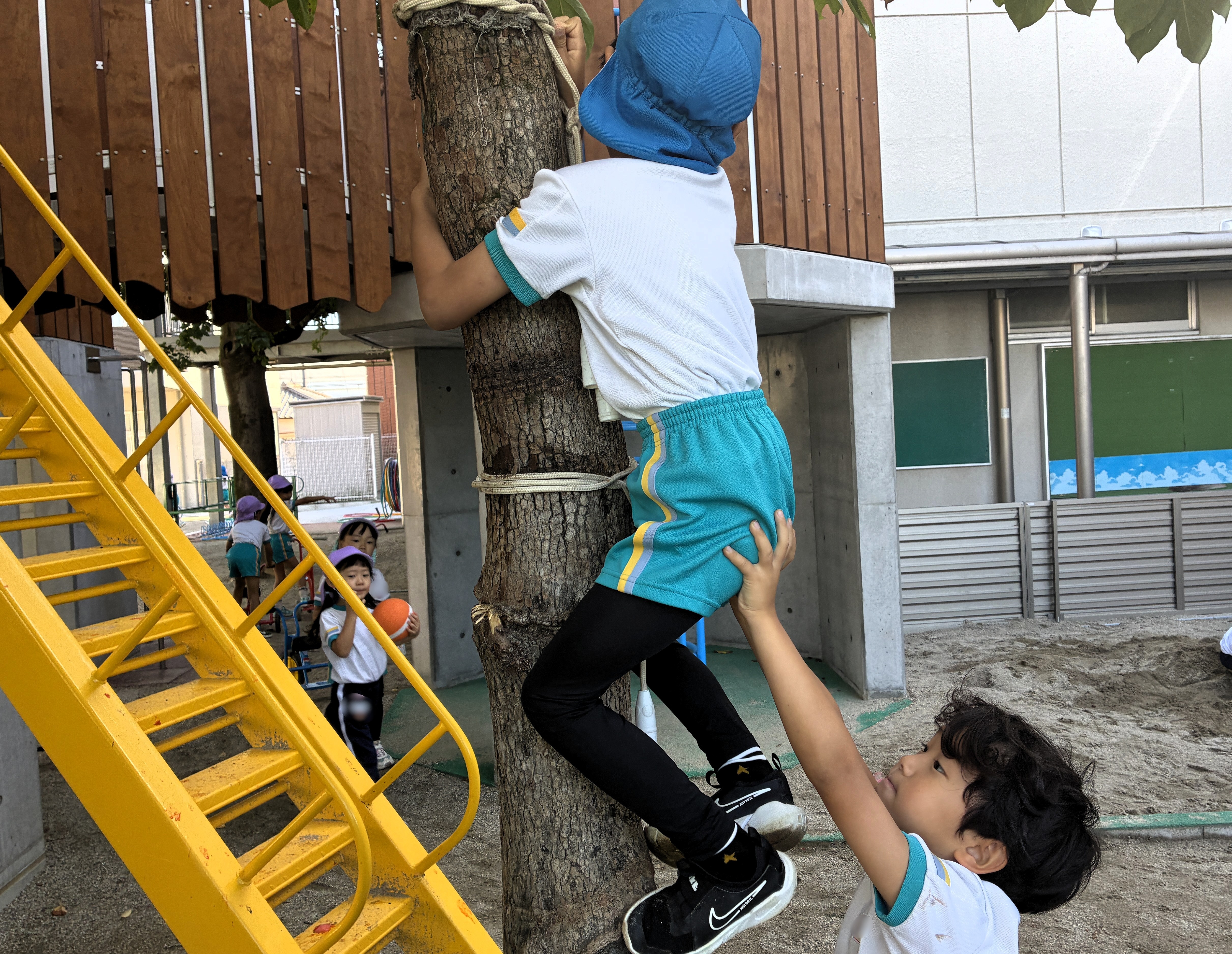 今年も年長児が頑張って登り、いくつか取ってきました。