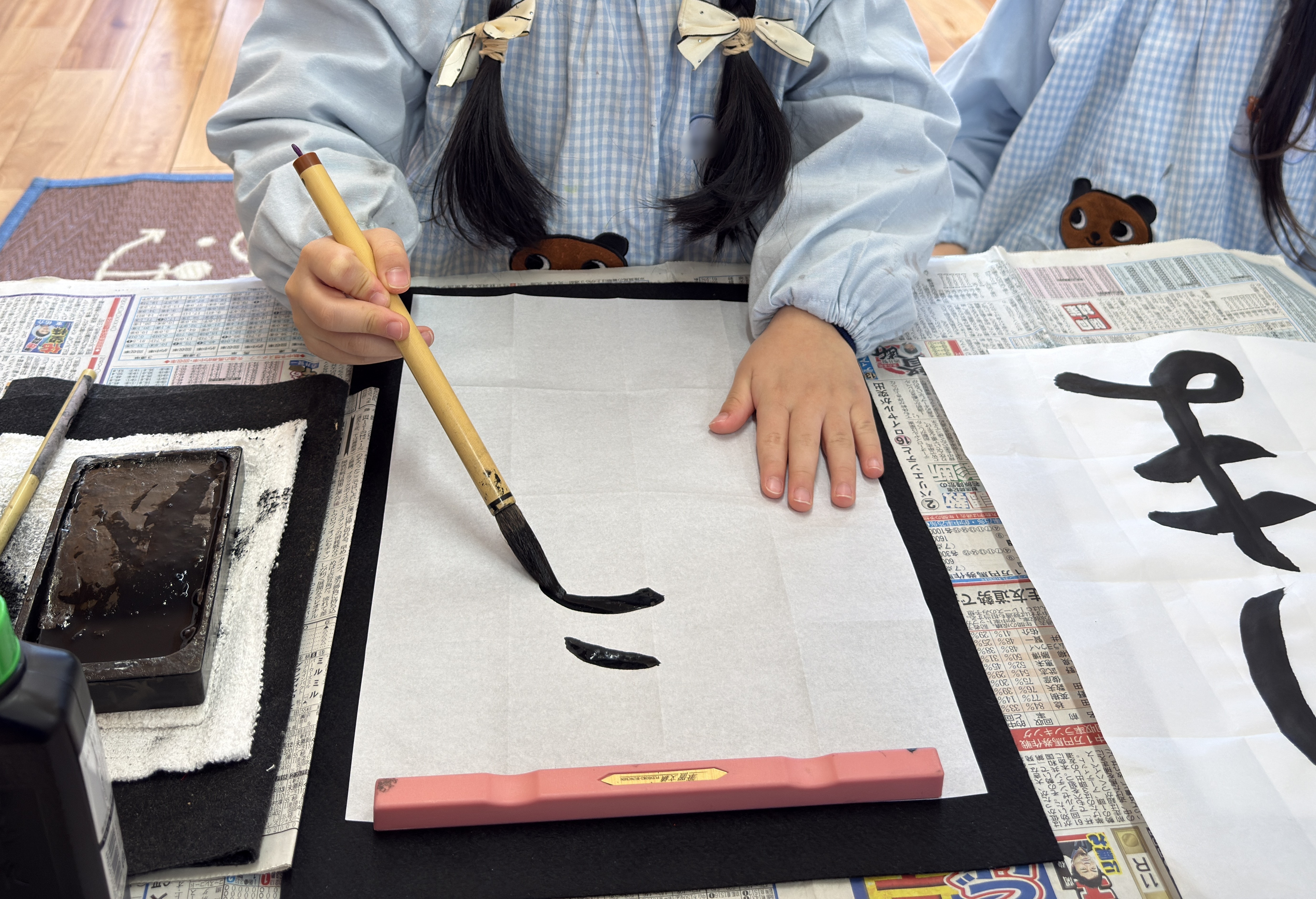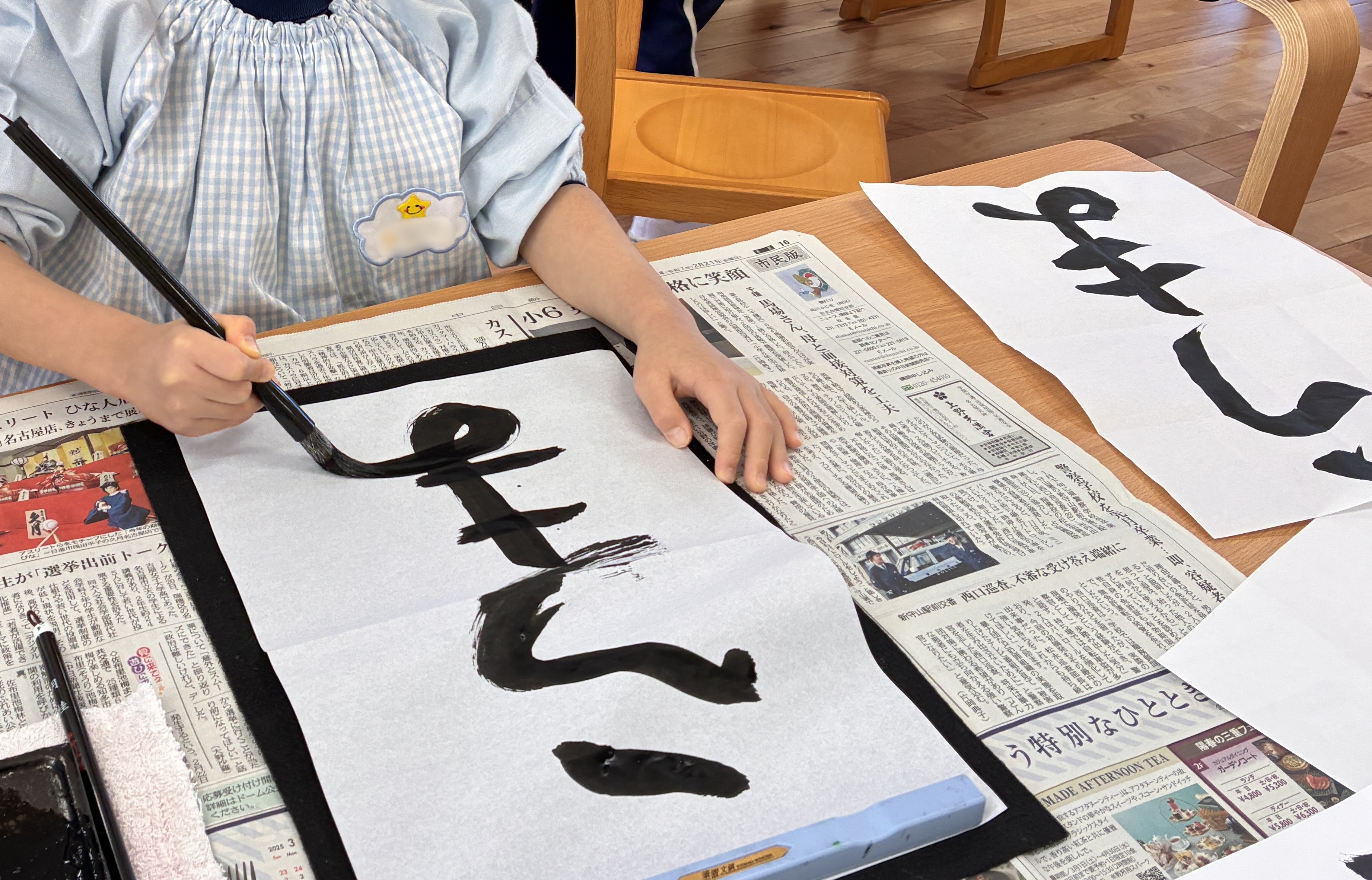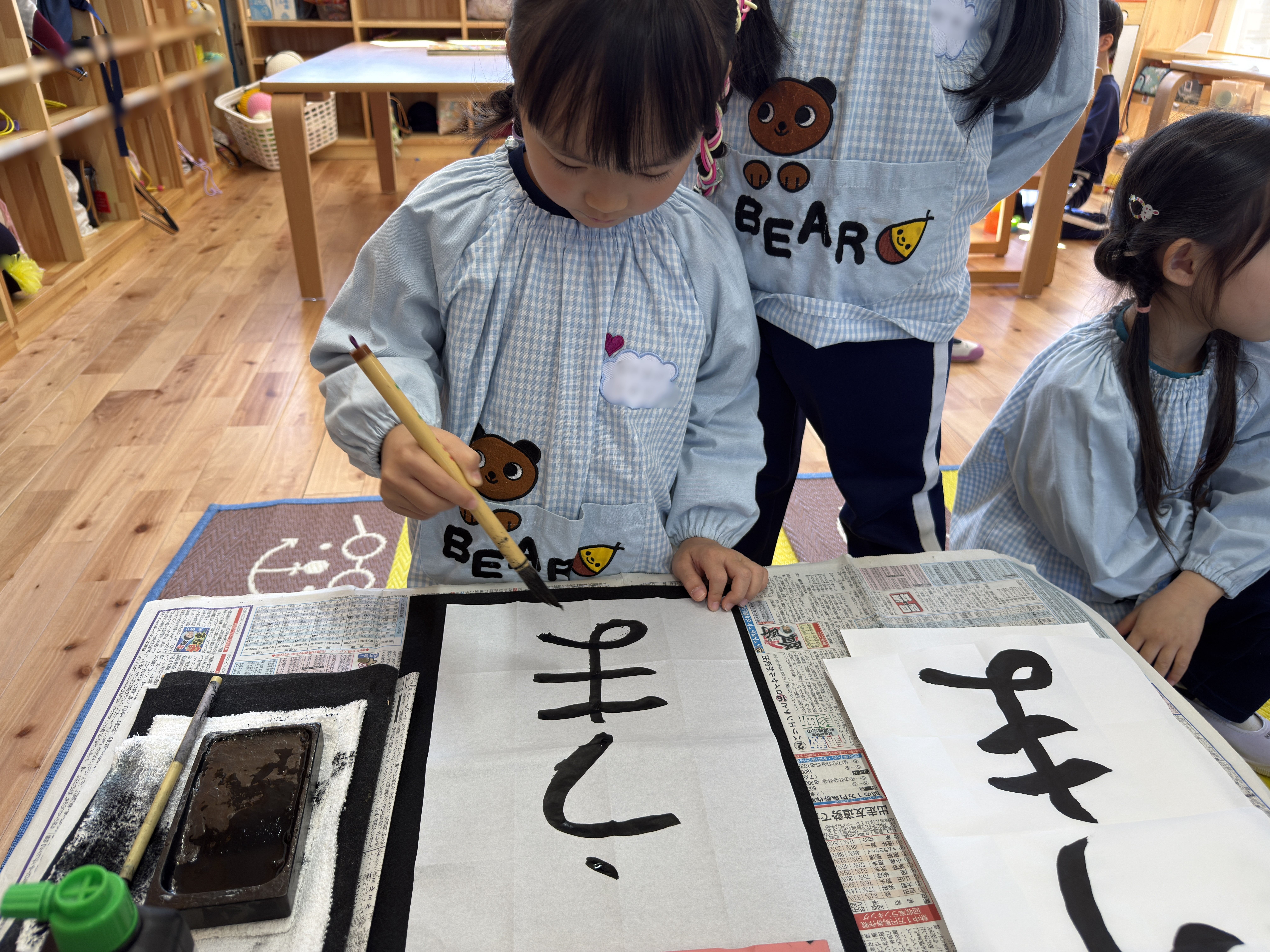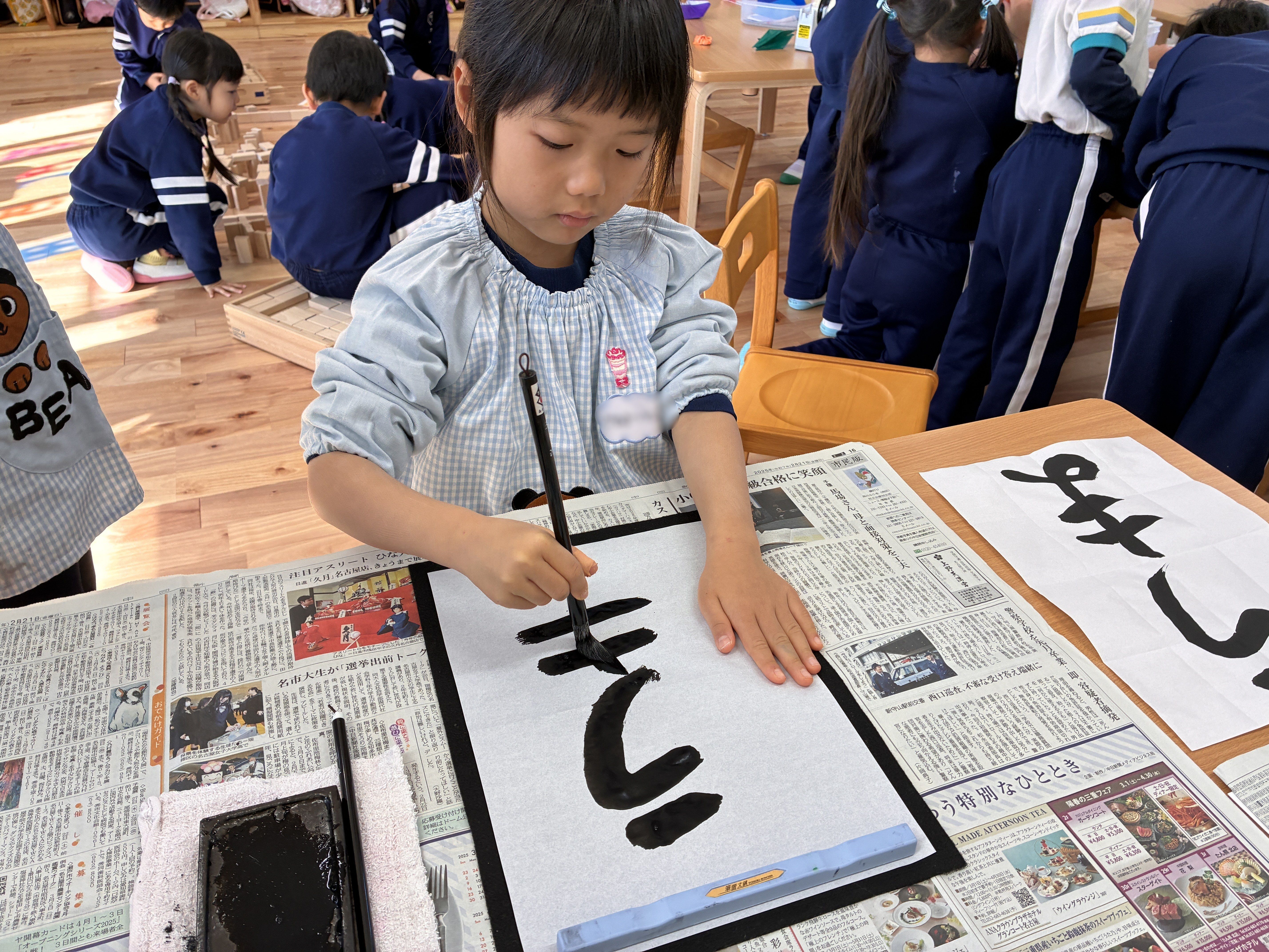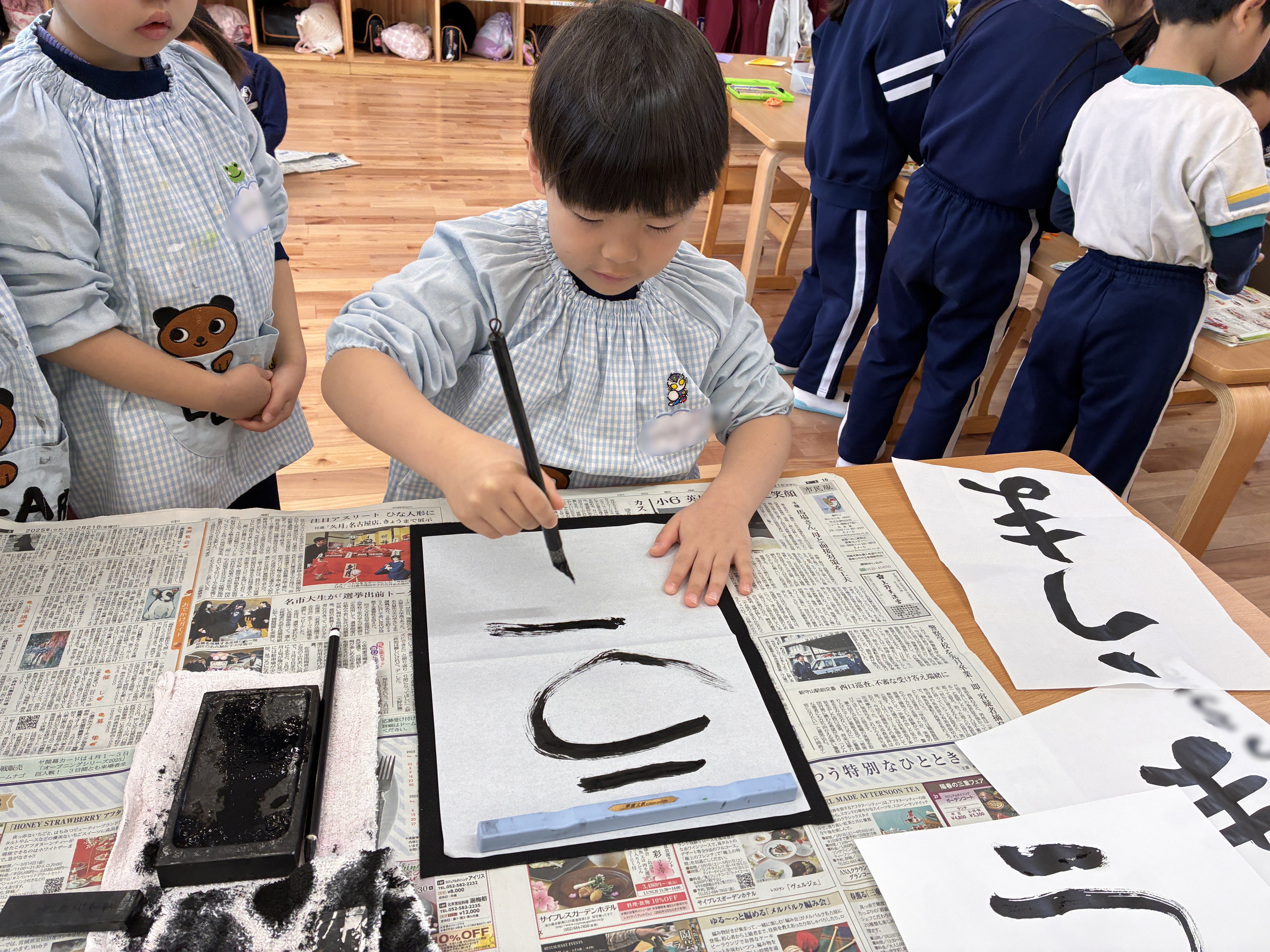 園長先生の見本を見ながら、今年の干支である「うま」を書きました。
